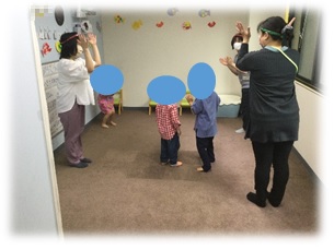挨拶後にはまたお部屋を移動し、この日の合言葉「トリックオアトリート!」を元気な声で先生に言いました(* ´艸`)