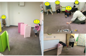 マッチング遊びでは、くじ引きで引いた絵を覚えて、お部屋を移動して見つけるというルールで行いました。