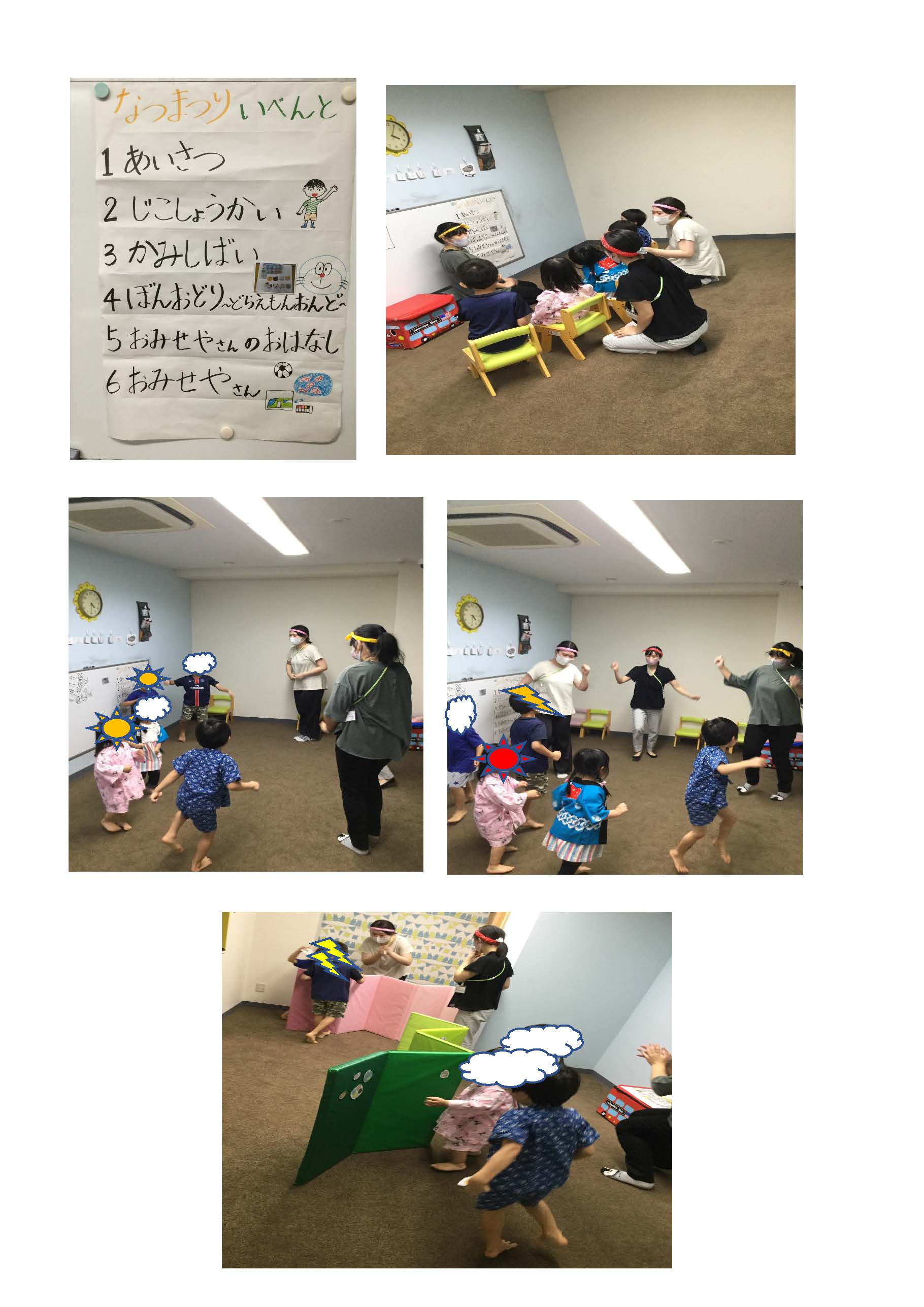 お部屋ごとにお店を開き、〈魚釣り〉〈サッカーゲーム〉〈お面屋さん〉を行いました。![]()